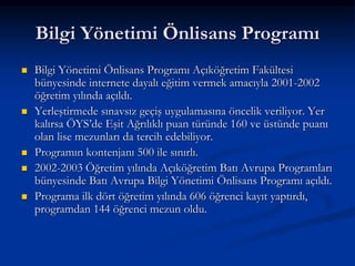 açıköğretim modeli Bilgi Yönetimi Programının daha geniş