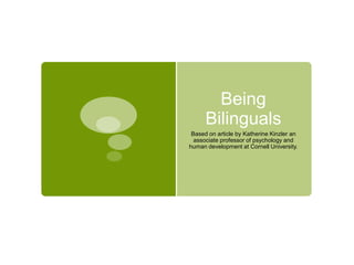 Two new studies show that exposure to multiple languages improves children's cognitive and social skills. A study of 4-6 year olds found that bilingual children were better able to take someone else's perspective to understand their meaning. For example, if an adult asked for the "small" car when only the medium and large cars were visible, bilingual children were more likely to understand the adult meant the medium car. A second study of 14-16 month old babies found that those exposed to multiple languages were more likely to hand an adult the object they could both see, rather than an identical object only the baby could see. These findings suggest that exposure to multiple languages, even without full bilingual ability, can facilitate interpersonal understanding