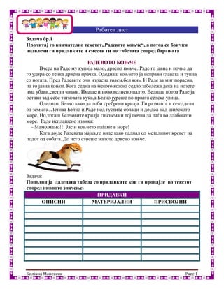 Прочитај го внимателно текстот„Радевото коњче“, а потоа со боички