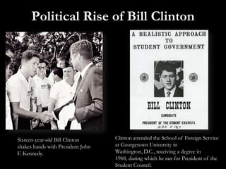 The document summarizes that from April to July 1994, the Hutu military in Rwanda killed around 800,000 Tutsis and Hutu moderates during the Rwandan genocide. Classified documents revealed that President Bill Clinton knew a genocide was occurring in Rwanda in April 1994 but chose not to intervene. The document questions why Clinton chose not to intervene given the intelligence about eliminating all Tutsis.