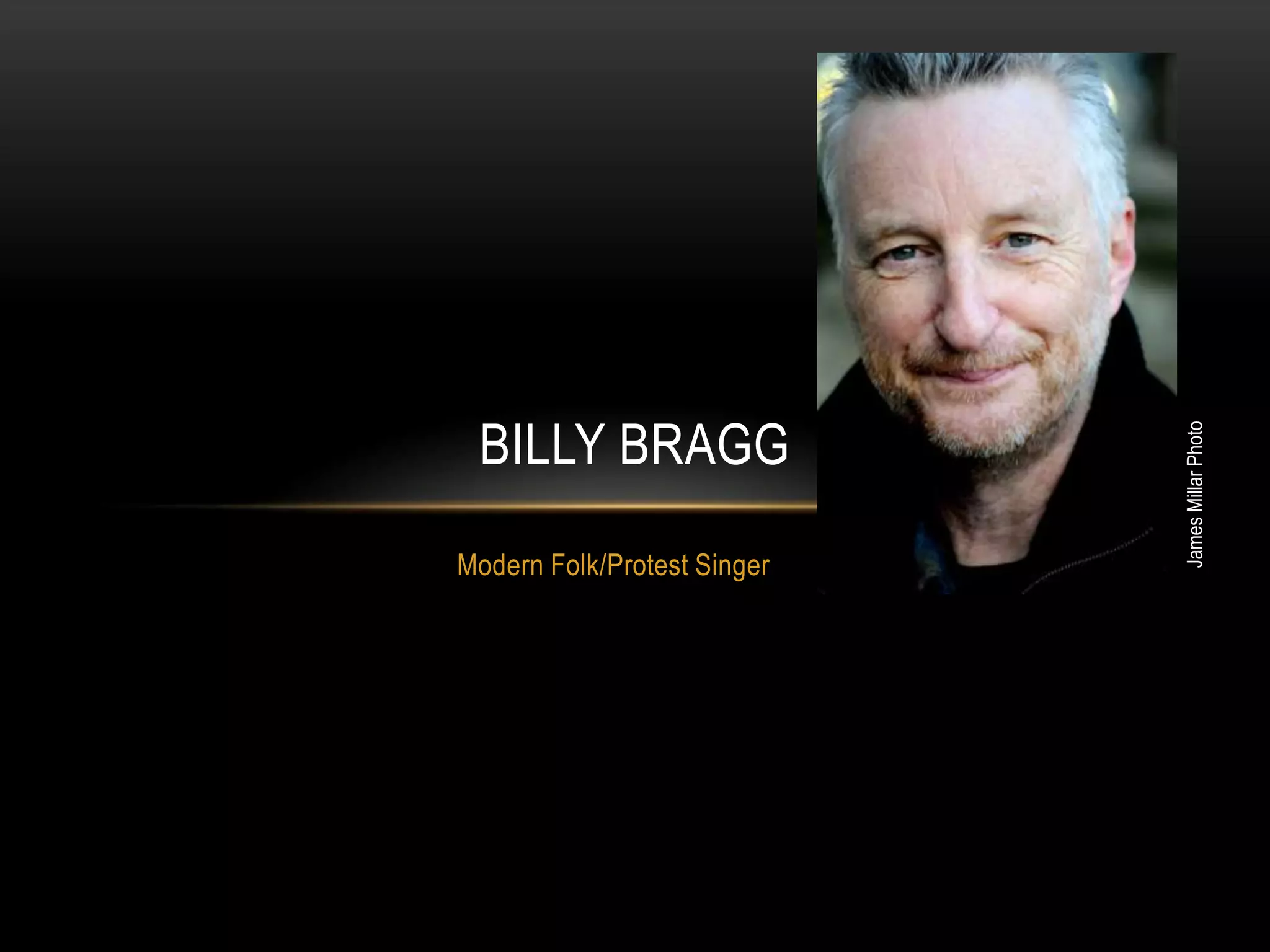 Billy Bragg is an English singer-songwriter known for blending folk music, punk rock, and protest songs in his lyrics dealing with political and romantic themes. He began his career in 1977 with the punk band Riff Raff and later performed solo. His 1984 album Brewing Up introduced political and love songs. Between the Wars and Talking with the Taxman about Poetry achieved chart success in the UK in the 1980s. Bragg has also collaborated with other artists and written songs based on lyrics by Woody Guthrie. He actively promotes political and social causes through his music and uses social media and his website to connect with fans.
