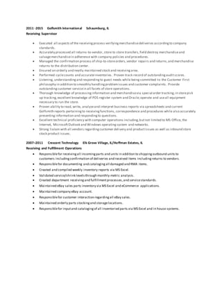 Billy Mitchell has over 20 years of experience in retail operations, customer service, and technology roles. He is currently an Assistant Store Manager at Golfsmith International in Schaumburg, IL, where he manages store operations, employees, inventory, and customer service. Previously, he held roles in receiving, project management, and network administration. He has a proven track record of exceeding sales goals and audit scores. Mitchell is proficient in Microsoft Office, inventory systems, and customer relationship management tools.