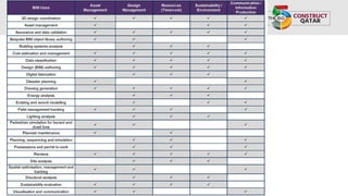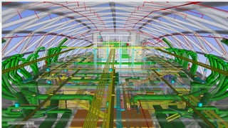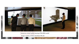 This document discusses the benefits of building information modeling (BIM) in construction project management. It explains that BIM allows for improved collaboration, coordination, planning, and decision-making across the project lifecycle from design through construction and operations. Integrating BIM with project scheduling through 4D modeling provides visualizations that improve constructability analysis, site planning, progress tracking, and issues resolution. Studies found that BIM can deliver cost savings of up to 30% over the lifetime of a building project through improved design, construction, and facility management.