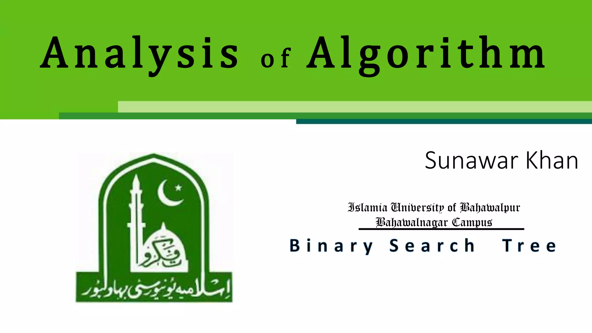 The document discusses binary search trees and their operations. It defines key concepts like nodes, leaves, root, and tree traversal methods. It then explains how to search, insert, find minimum/maximum elements, and traverse a binary search tree. Searching a BST involves recursively comparing the target key to node keys and traversing left or right. Insertion finds the appropriate position by moving pointers down the tree until reaching an empty node.