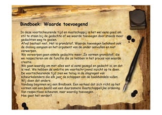 Vandaag beginnen wij een Bindboek. Een verhaal dat zich richt op het