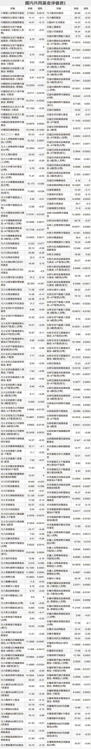 國內共同基金淨值