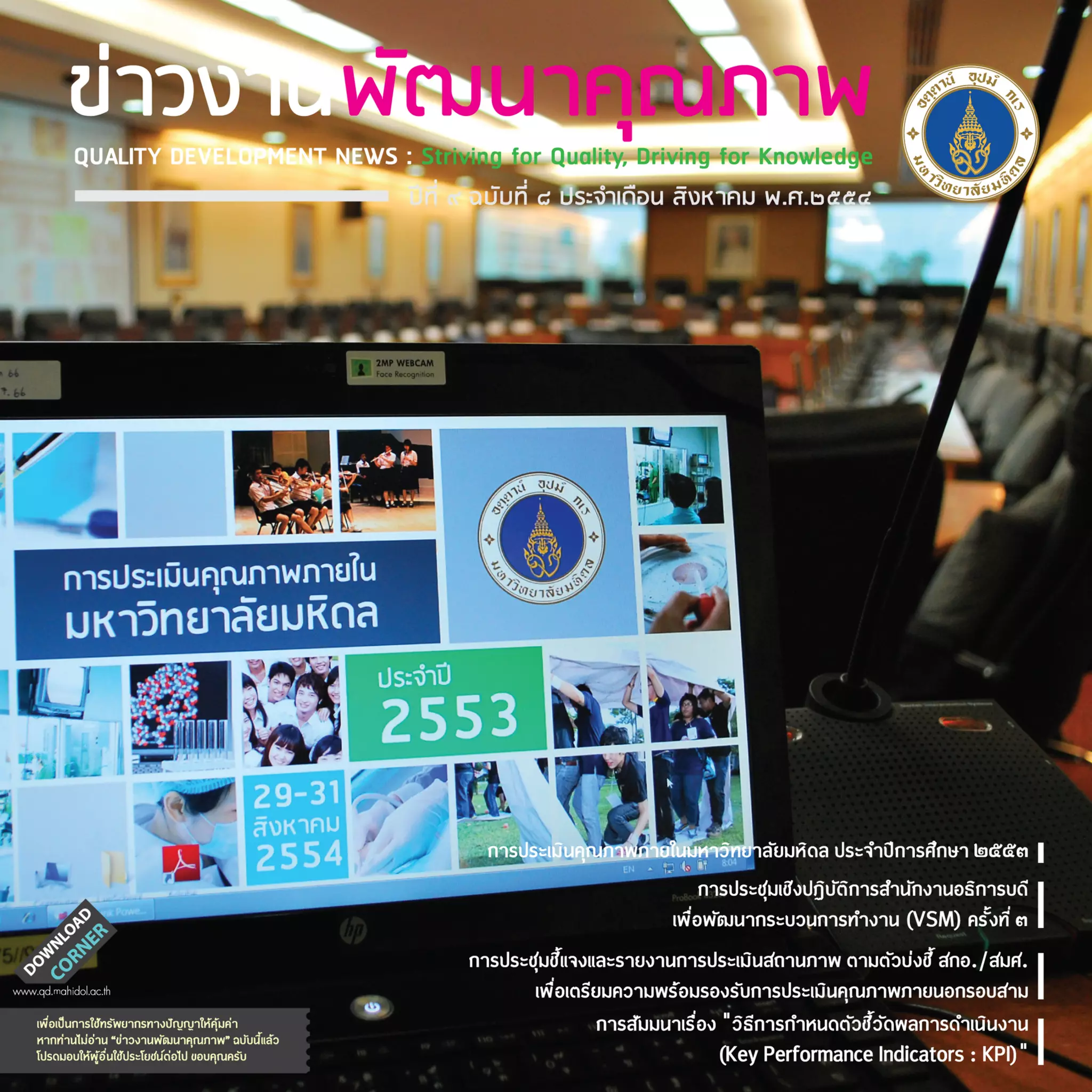 ข่าวงานพัฒนาคุณภาพ มหาวิทยาลัยมหิดล ประจำเดือนสิงหาคม 2554