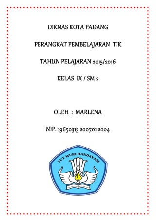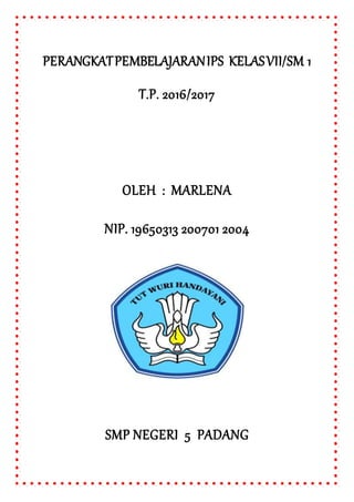 Dokumen ini berisi daftar perangkat pembelajaran yang disusun oleh guru bernama Marlena untuk mata pelajaran IPS kelas VII tahun pelajaran 2016/2017, TIK kelas IX tahun pelajaran 2015/2016, dan IPS kelas VIII tahun pelajaran 2014/2015 di SMPN 5 Padang, Kota Padang.