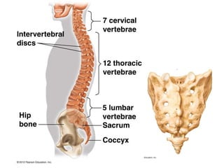 The document summarizes key points about the human skeletal system and muscle function. It describes that the human skeleton consists of 206 bones that make up the axial skeleton (skull, vertebrae, ribs) and appendicular skeleton (arms, legs, shoulders, pelvis). It also explains that muscles contract through the sliding filament mechanism where actin filaments slide along myosin filaments, shortening the muscle.