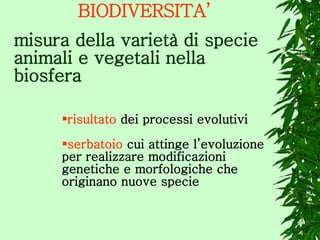 La conferenza di Rio del 1992 ha portato alla convenzione sulla biodiversità, sottolineando l'importanza della conservazione e dell'uso sostenibile delle risorse biologiche. La biodiversità è descritta a vari livelli, inclusi geni, specie ed ecosistemi, con un'attenzione particolare ai processi che possono danneggiarla. Il documento evidenzia anche le iniziative europee e nazionali per la conservazione, inclusa la creazione di reti di aree protette e il monitoraggio della diversità biologica.