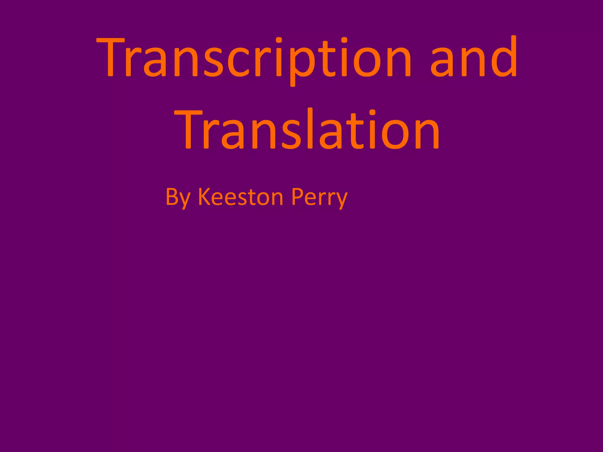 The document describes the process of transcription and translation in a cell. It shows how DNA is transcribed into mRNA by RNA polymerase in the nucleus. The mRNA is then exported through the nuclear pore into the cytoplasm. In the cytoplasm, ribosomes translate the mRNA into a protein by linking amino acids specified by the mRNA codons.