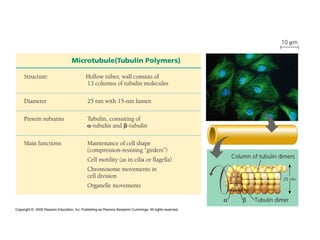 Chapter 6 discusses the basic unit of life, the cell, highlighting the correlation between cell structure and function, and the distinctions between prokaryotic and eukaryotic cells. It covers microscopy techniques for visualizing cells, the cellular components including organelles like the nucleus, endoplasmic reticulum, and mitochondria, and the endomembrane system's role in protein transportation and metabolic functions. Additionally, the chapter explores the cytoskeleton's structure and function, as well as the mechanics of cilia and flagella movement.