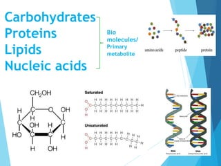 The document discusses carbohydrates, proteins, and lipids. It provides details on: