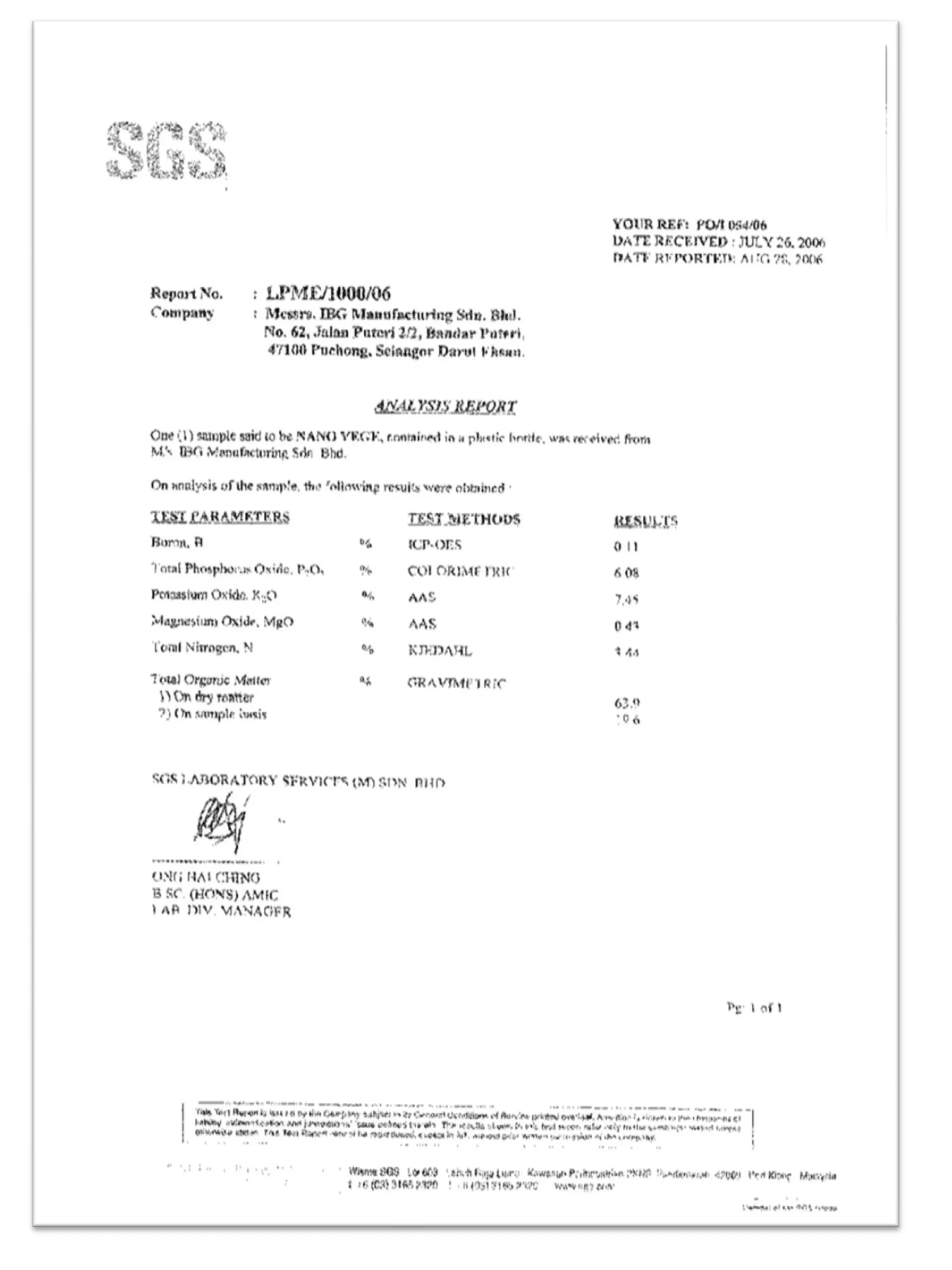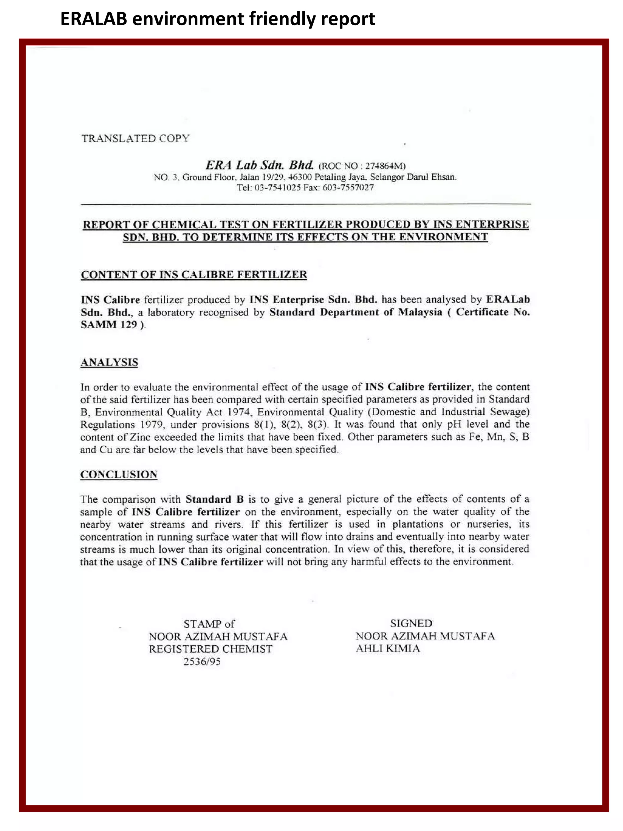 Bio Fertilizer Test Report
