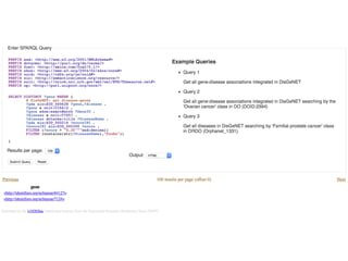 This document provides an introduction to bio-ontologies and the semantic web. It discusses what ontologies are and how they are used in the bio domain through initiatives like the OBO Foundry. It introduces key semantic web technologies like RDF, URIs, Turtle syntax, and SPARQL query language. It provides examples of ontologies like the Gene Ontology and how ontologies can be represented and queried using these semantic web standards.