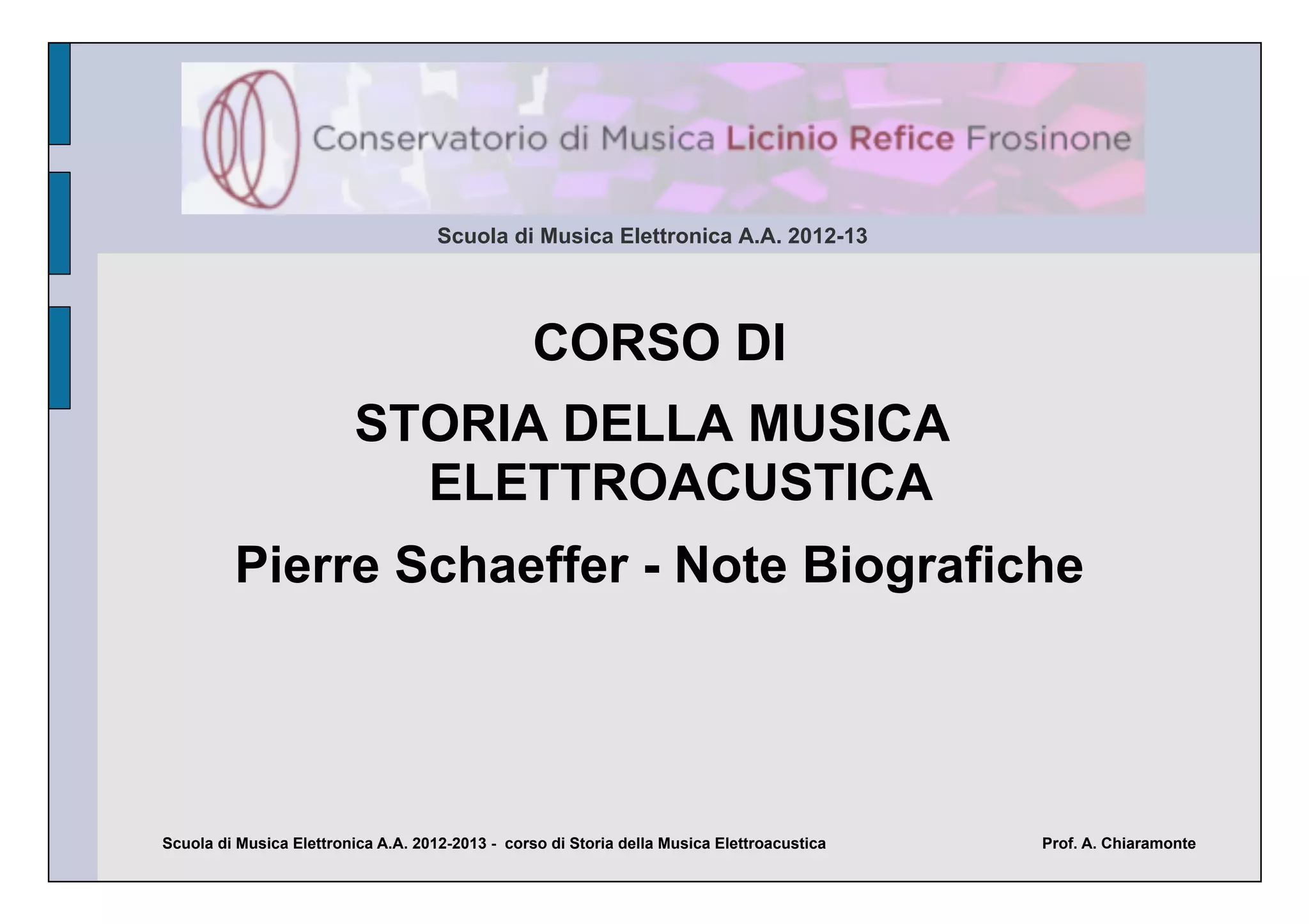 Pierre Schaeffer, nato nel 1910, è un pioniere della musica elettroacustica, noto per aver fondato il club d'essai e per aver coniato il termine 'musica concreta' nel 1948. Ha diretto e ristrutturato vari gruppi di ricerca musicale in Francia fino al 1981 e pubblicato opere fondamentali come il 'traité des objets musicaux' nel 1966. È deceduto nel 1995, lasciando un'importante eredità nel panorama musicale.