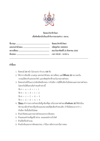 1. ข้อสอบมี 20 หน้า (ไม่รวมปก) จานวน 100 ข้อ