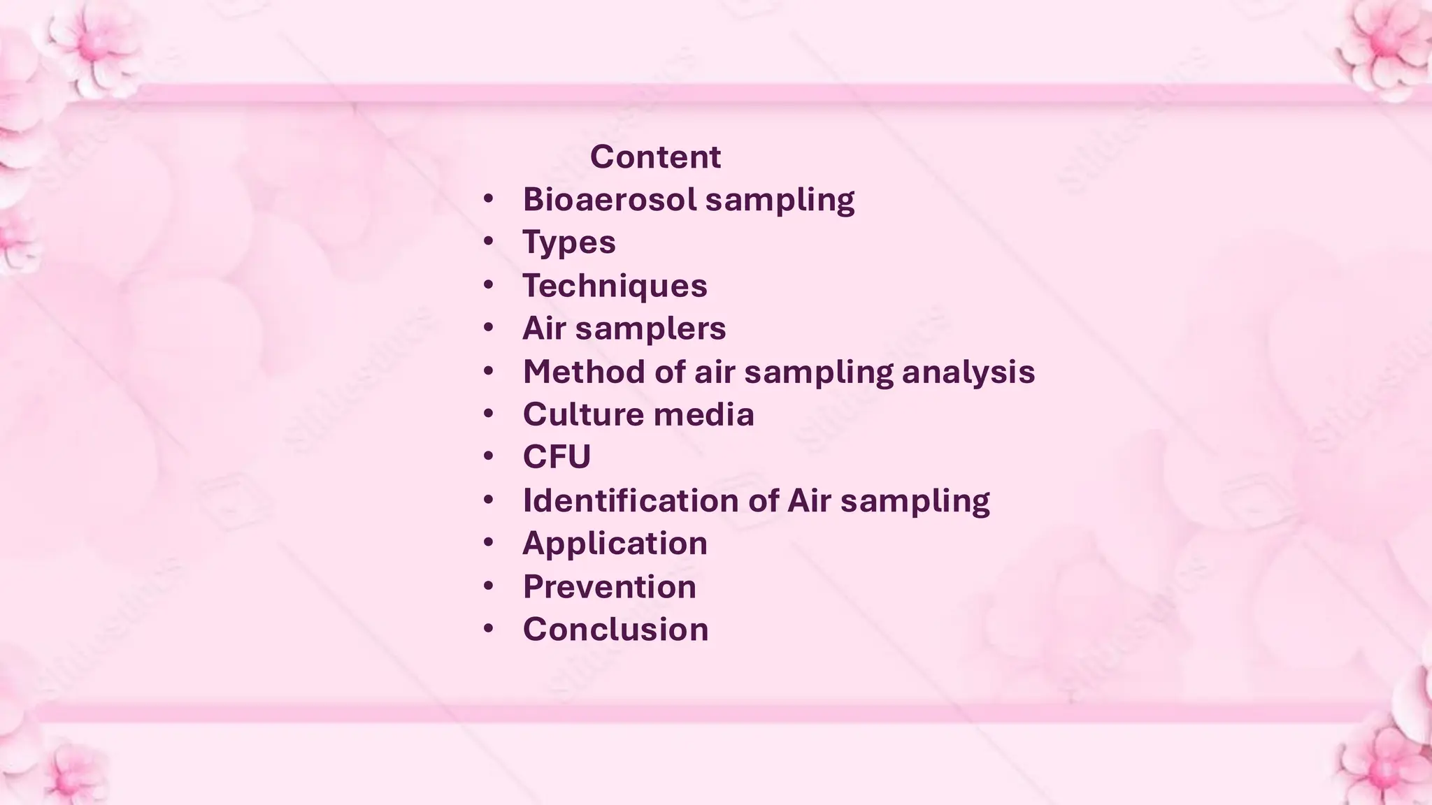 The document discusses bioaerosol sampling, a method to collect and analyze airborne biological particles for assessing air quality, monitoring pathogens, and ensuring compliance with safety standards. It outlines various sampling techniques, air samplers, and methods of analysis, emphasizing the importance of proper collection, culture media, and identification of microorganisms. Applications of bioaerosol sampling include indoor air quality monitoring, infection control, and environmental assessments, with preventative measures suggested to reduce health risks associated with airborne microbes.