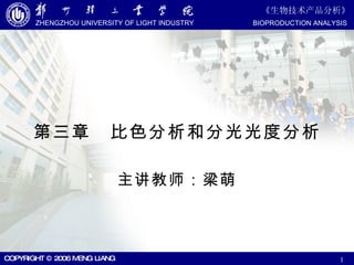 该文档详细介绍了分光光度分析和比色分析的原理、方法及应用。文中涵盖了比尔定律、光谱特性、化学相互作用及噪声对分析结果的影响,并讨论了如何通过标准曲线进行分析。最后,文档还提及了不同类型的分光光度计以及荧光光谱和比色反应的必要条件。
