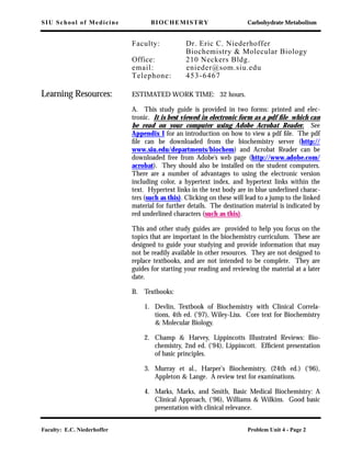 This document provides an introduction to carbohydrate metabolism. It discusses glycolysis, glycogenesis, glycogenolysis, and gluconeogenesis. Specifically, it covers the basic principles of metabolism, including the roles of enzymes as catalysts and in regulating metabolic pathways. It also provides learning objectives and defines key terms related to carbohydrate metabolism.