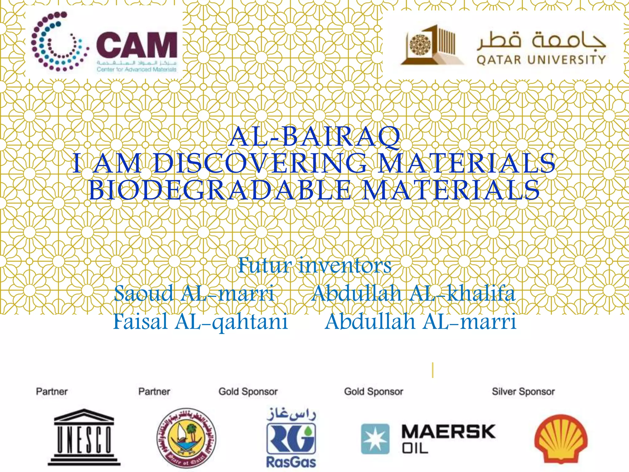 The document outlines a module focused on biodegradable materials, including activities such as comparing packing materials and designing biodegradable products like cups and medicine capsules. It emphasizes the importance of using biodegradable materials for environmental sustainability and suggests methods for improving product design. The project aims to reduce plastic waste and aligns with Qatar's national vision for a greener future.