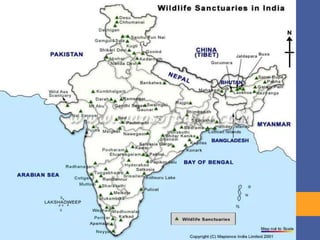 The document provides information about biodiversity and its conservation. It defines biodiversity as the variety of life on Earth, including genetic diversity, species diversity, and ecosystem diversity. It notes that biodiversity is being lost due to factors like habitat destruction, overexploitation, pollution, invasive species, and climate change. The document then discusses approaches to conserving biodiversity, including both in-situ conservation methods like protected areas as well as ex-situ conservation methods like seed banks, gene banks, botanical gardens, and zoos. Overall, the document emphasizes the importance of biodiversity for human life and the need to balance development with conservation through sustainable practices and policies.