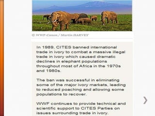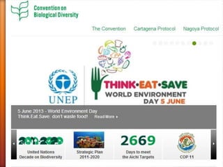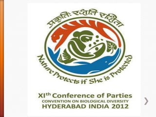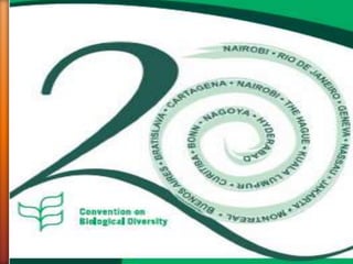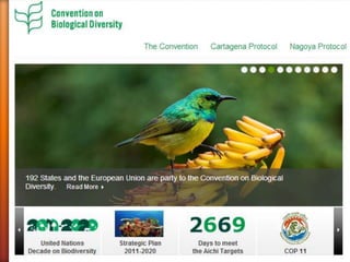 The Convention on Biological Diversity (CBD) is an international legally binding treaty adopted in 1992. It aims to promote the conservation of biodiversity, sustainable use of biodiversity, and fair and equitable sharing of benefits arising from genetic resources. The CBD recognizes that states have sovereign rights over their natural resources, and aims to ensure these resources are used in a sustainable manner. It also promotes cooperation between countries in biodiversity conservation. The CBD has near universal membership, with 196 parties that have agreed to its objectives.