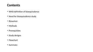 Bioequivalence Study.pptxDiscusses bioequivalence study its applications & study designs