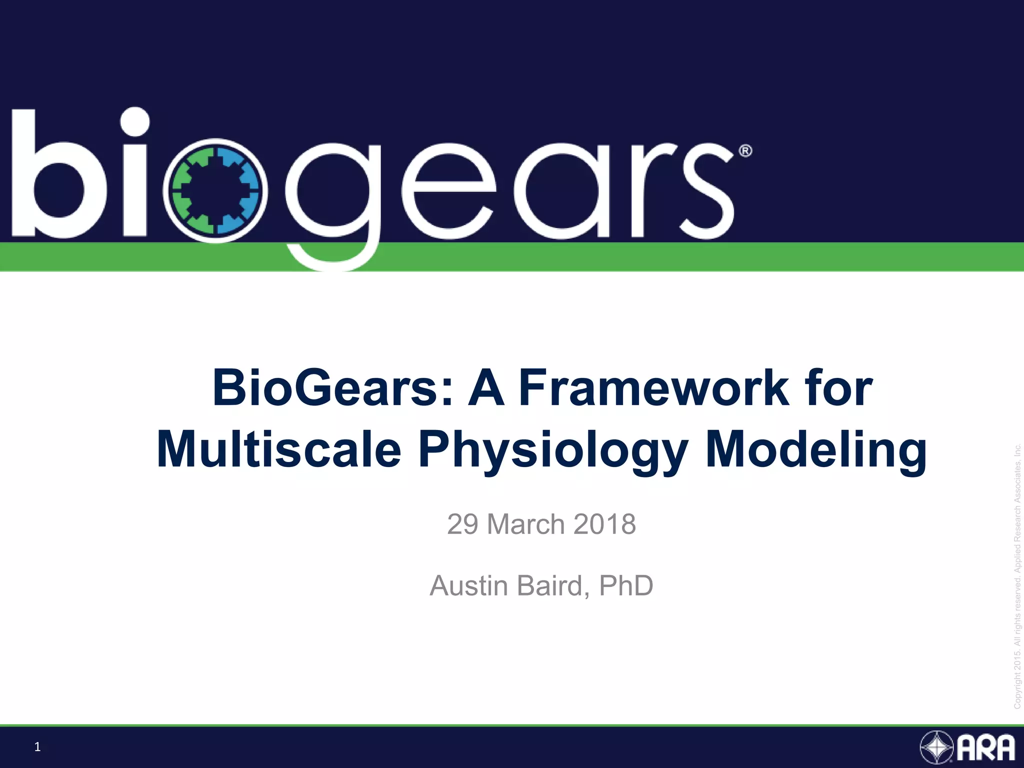 The document discusses Biogears, a multiscale physiology modeling framework developed by Applied Research Associates, Inc., to enhance medical training and simulation. With a budget of $6,959,593, the project aims to create an accessible physiology research platform and improve simulated physiological accuracy across various applications. Key features include a modular modeling approach, pharmacokinetics and dynamics integration, and open source accessibility for users, fostering collaboration in medical education.