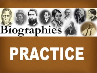 Dr David Livingstone was a Scottish scientist and missionary doctor born in 1813 who explored Southern and Central Africa, becoming the first European to see Victoria Falls in 1855. He had six children and died in Rhodesia, Africa in 1873. William Shakespeare was an English playwright, poet and actor born in 1564 in London who worked at the Globe Theatre and was famous for plays like Romeo and Juliet. He had three children and died in Warwickshire, England in 1616. Yuri Gagarin was a Russian pilot and cosmonaut born in 1934 who became the first human to journey into outer space, having two daughters before dying at age 34 in a 1968 aircraft crash.