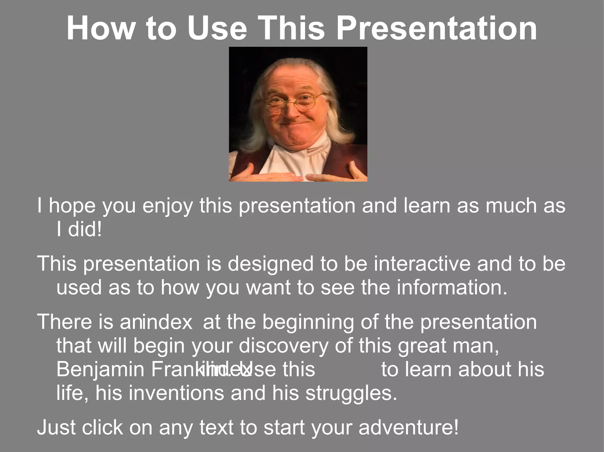 Benjamin Franklin lived an industrious life from 1706 to 1790. He made important contributions in many areas, including inventing bifocal glasses, the Franklin stove, the lightning rod, and suggesting daylight saving time. Franklin held several political roles and helped draft the Declaration of Independence. He also founded important institutions in Philadelphia and promoted the abolition of slavery.