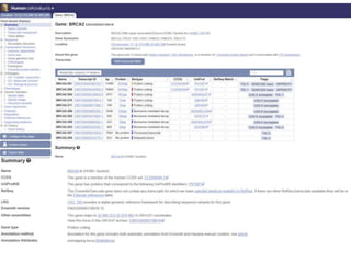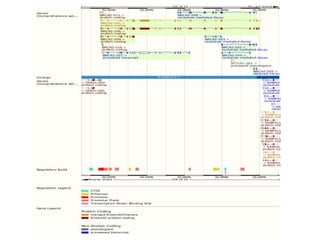 2) It also discusses tools for analyzing sequences like BLAST for similarity searches, multiple sequence alignments, and genome browsers for interactively viewing complete genomes.