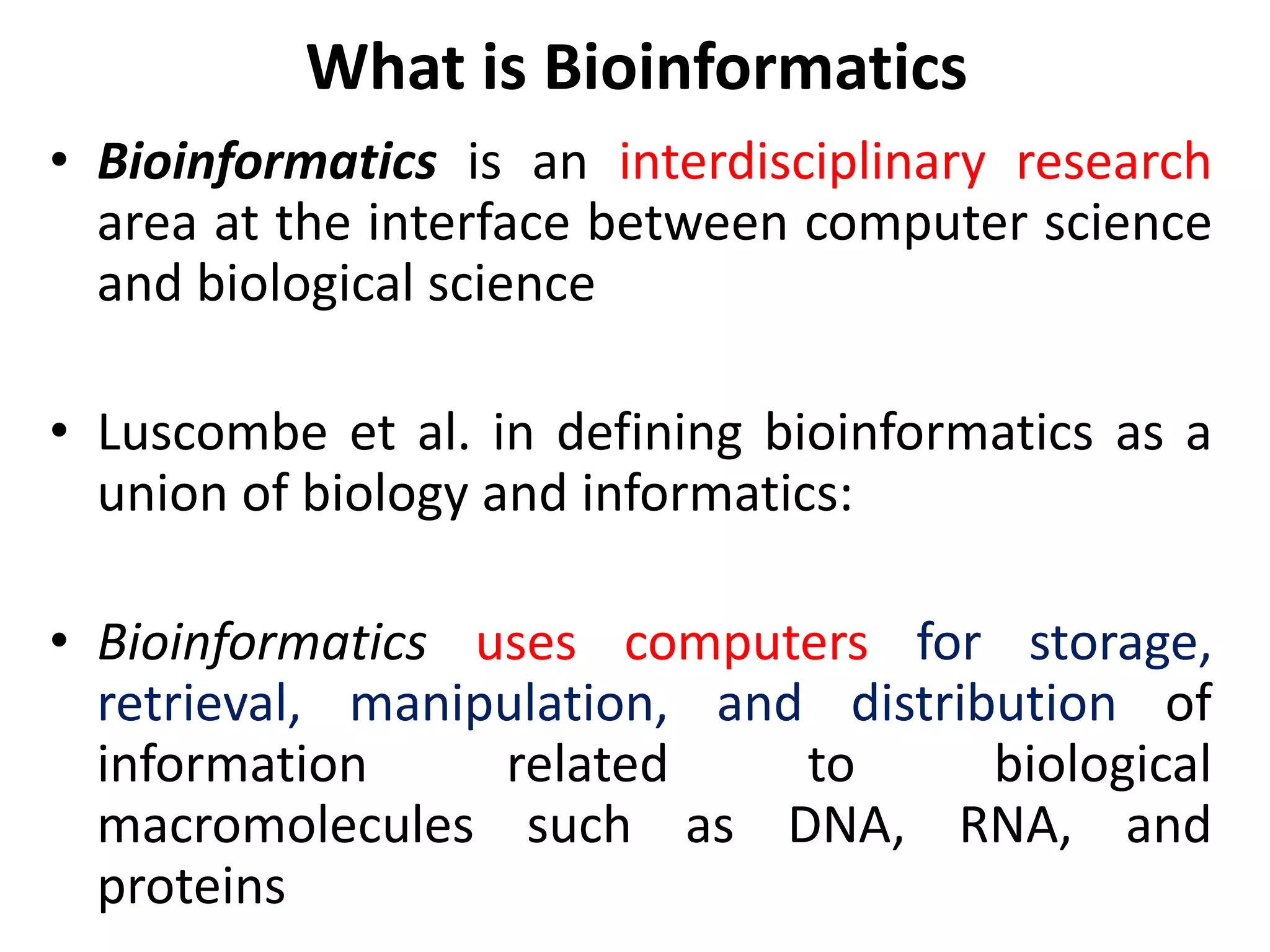 This document provides an overview of the field of bioinformatics. It defines bioinformatics as the intersection of biology and computer science, using computational tools to analyze and distribute biological information like DNA, RNA, and proteins. The goals of bioinformatics are to better understand cells at the molecular level by analyzing sequence and structure data. Key applications include drug design, DNA analysis, and agricultural biotechnology. The document also describes different types of biological databases like primary databases that contain raw sequence data, and secondary databases that provide additional annotation and analysis of sequences.