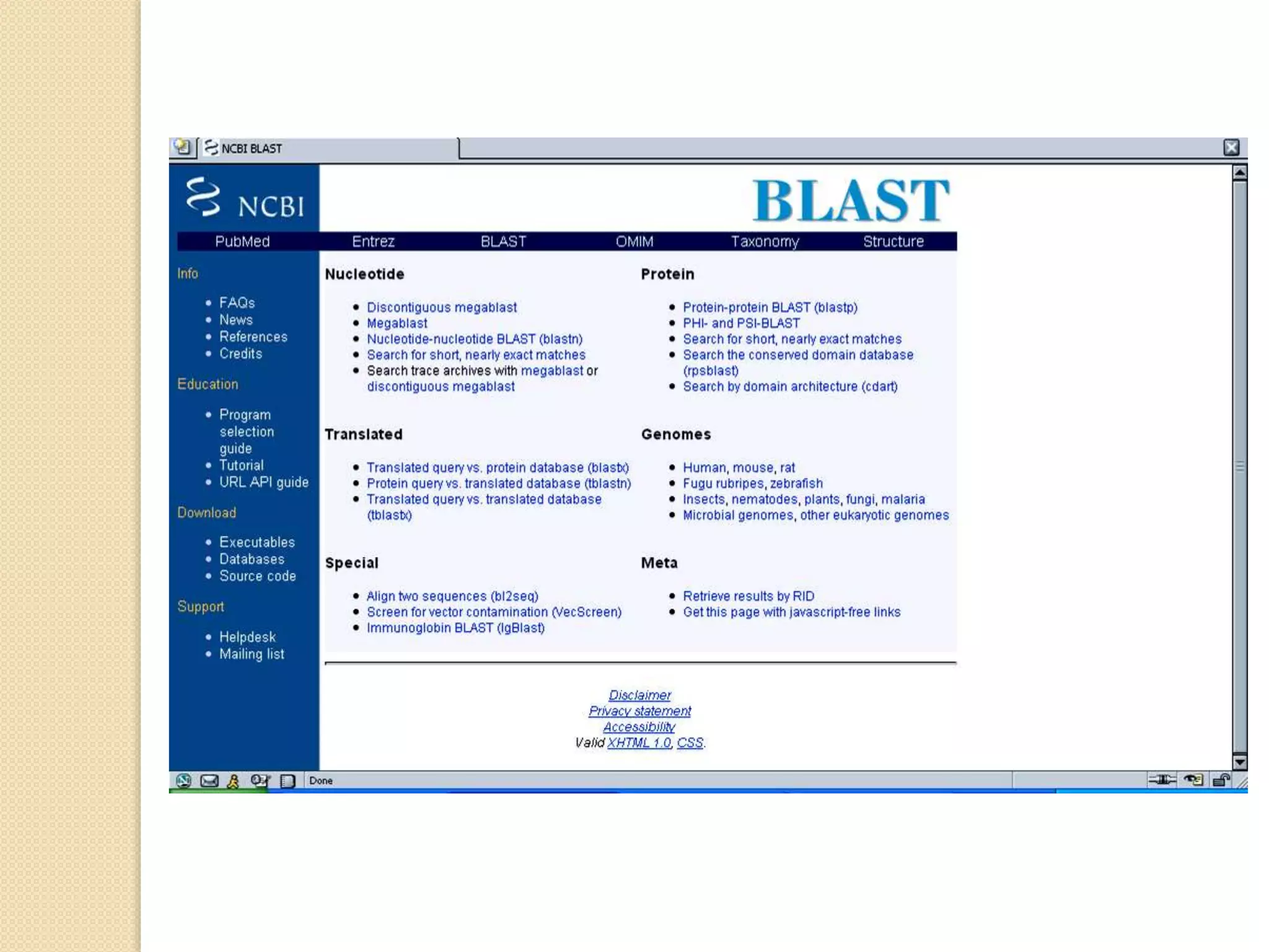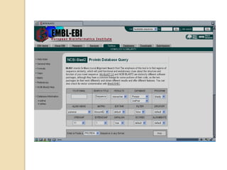 Bioinformatics is the use of computers for the acquisition, management, and analysis of biological data. It combines biology, computer science, and information technology to analyze and interpret biological data. The field includes molecular medicine, gene therapy, drug development, and other applications. Common software tools used in bioinformatics include BLAST and FASTA. BLAST is an algorithm for comparing biological sequences to identify similar sequences in databases, while FASTA is a software package for protein and DNA sequence alignment.