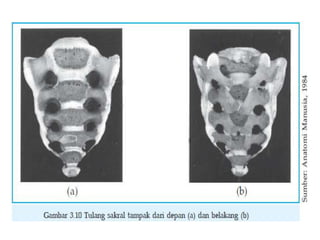 Dokumen ini menjelaskan tentang sistem gerak manusia yang melibatkan kerjasama tulang dan otot. Tulang berfungsi sebagai alat gerak pasif, sedangkan otot berfungsi sebagai alat gerak aktif dan memiliki kemampuan kontraksi. Selain itu, dokumen ini menguraikan komposisi tulang, jenis sendi, serta struktur dan fungsi otot.