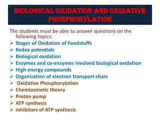 1. Oxidative phosphorylation is the process by which cells generate ATP by coupling the electron transport chain to phosphorylation. During this process, protons are pumped from the mitochondrial matrix to the intermembrane space, generating a proton gradient.
