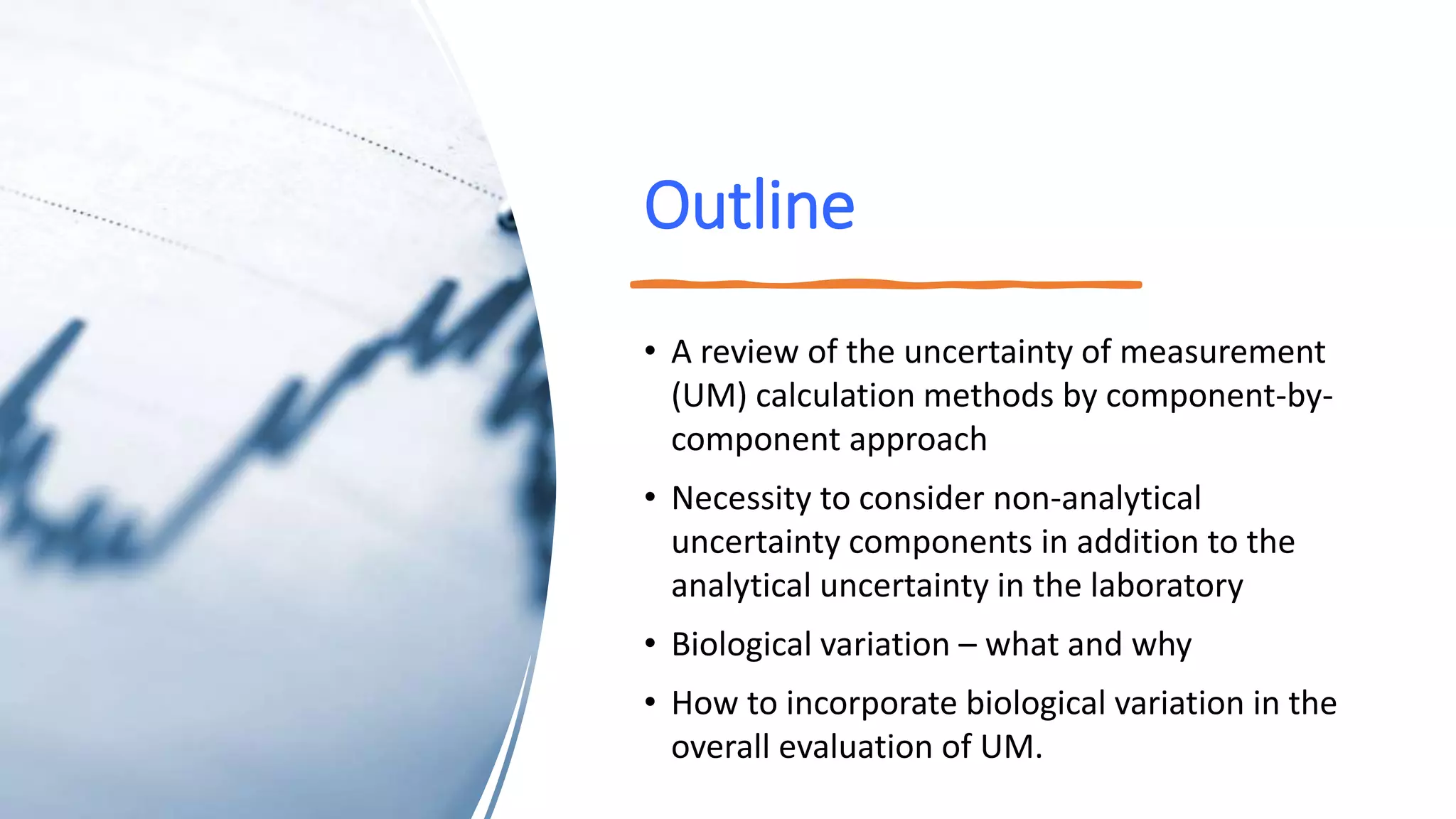 The document discusses the necessity of evaluating the uncertainty of measurement (UM) in medical testing, highlighting both analytical and non-analytical components, particularly the role of biological variation. It outlines methods for calculating combined uncertainties, emphasizing the importance of accurately interpreting test results in clinical contexts. Additionally, the document presents examples and guidelines for integrating biological variability into the assessment of uncertainty, underscoring its impact on clinical decision-making.