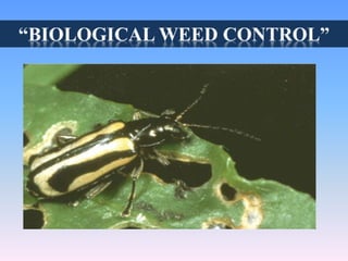 Biological weed control involves using natural enemies, such as insects, pathogens, and fungi, to reduce weed populations to manageable levels without eradicating them. The process includes selecting host-specific agents and implementing strategies like classical biological control and biological herbicides. Although it can be cost-effective and environmentally friendly, successful biological control is often slow and requires careful planning and patience.