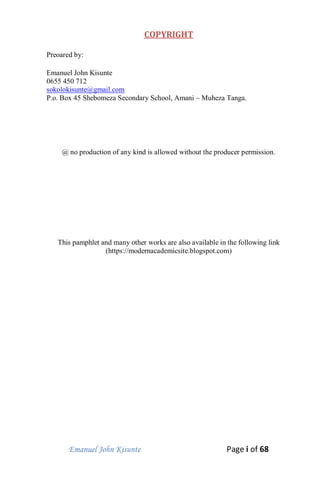 This document provides an introduction to biology for secondary school students in Form One. It defines biology and lists its major branches and characteristics of living things. It also describes scientific processes in biology like observation, measurement, and the scientific method. Measurement units and tools used in biology are identified. The importance of studying biology and its relationship to other fields like medicine, nutrition, agriculture and forestry is explained.