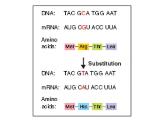 4) Mutations can occur through changes to nucleotides and can impact protein function, though most do not affect the organism.