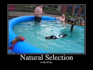 This document provides an introduction to evolution and natural selection. It explains that evolution is a change in allele frequencies over time, driven by genetic variation, environmental changes, and the struggle for existence. Natural selection leads to traits that aid survival and reproduction being passed on, potentially resulting in new species. While organisms cannot mutate fully formed body parts, small mutations over thousands of years can lead to new structures. Genetic drift, migration, and geographic isolation also influence evolution by changing allele frequencies in populations.