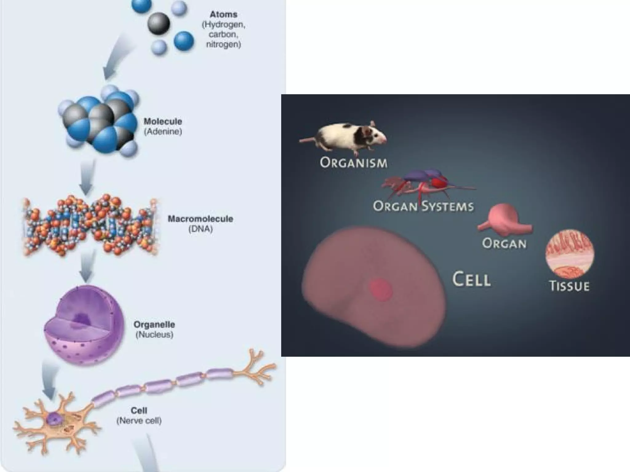 This document provides an overview of the 11 major organ systems in the human body. It describes the function and main components of each system, including the nervous, lymphatic, cardiovascular, respiratory, skeletal, muscular, digestive, excretory, and reproductive systems. The levels of organization in living things are also outlined, from atoms and molecules up to the whole organism. Homeostasis, the maintenance of internal stability, is introduced as an important involuntary process regulated by these organ systems.
