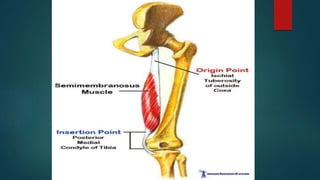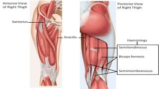 1) It describes the main muscles that act on the hip joint - the gluteal muscles (gluteus maximus, medius, and minimus), tensor fasciae latae, quadratus femoris, hip flexors, and hip extensors.