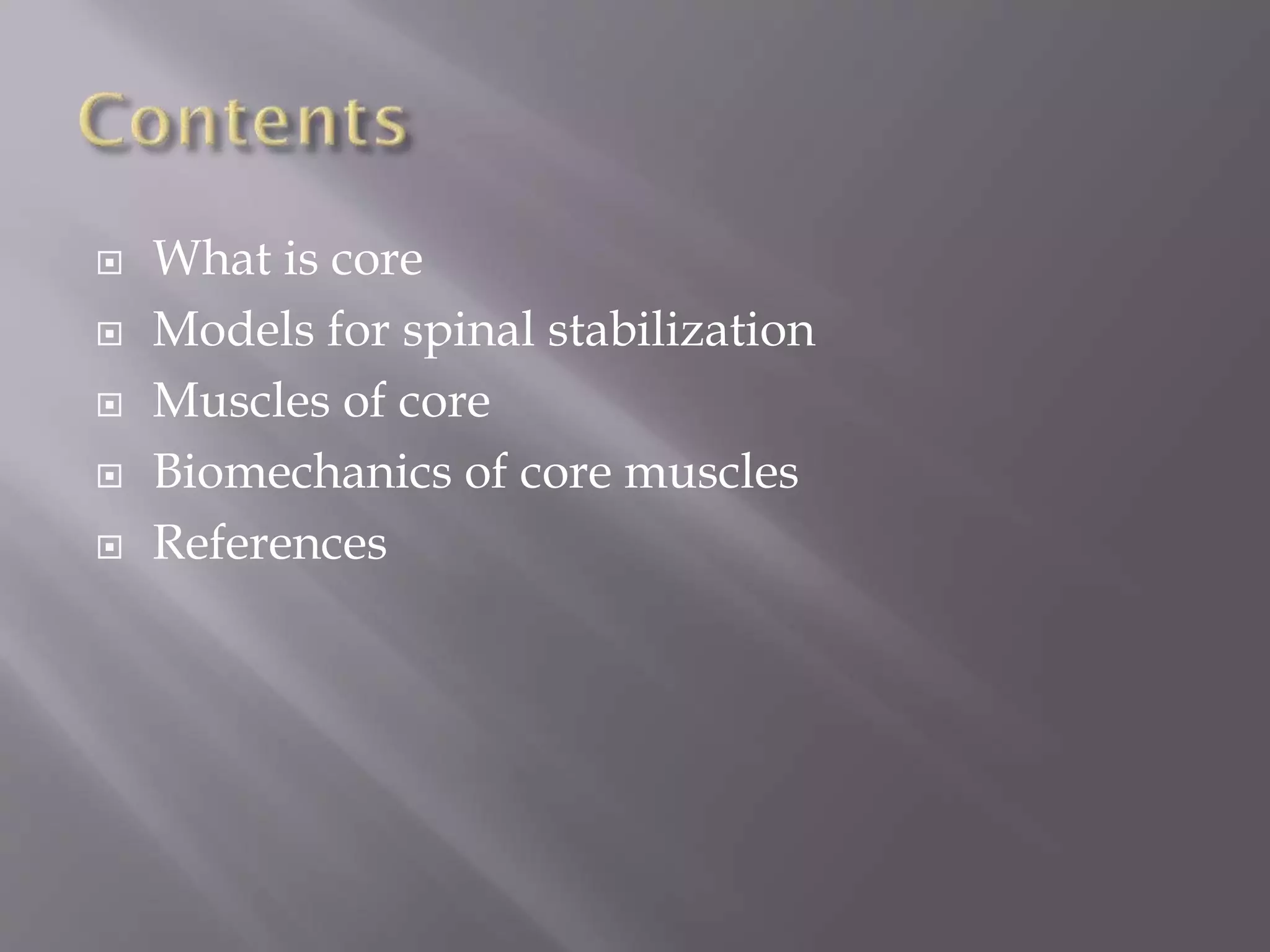 The document discusses the importance of the core in providing spinal stability and its role as the center of the functional kinetic chain. It introduces models for spinal stabilization, including passive, active, and neural control systems, and details the components involved in maintaining lumbar spine stability, such as form and force closure, motor control, and emotional factors. Additionally, it categorizes trunk muscles into local and global systems to highlight their contributions to spinal health and lumbopelvic stability.