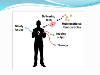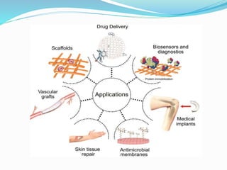 This document discusses the biomedical applications of nanoparticles. It begins by defining nanoparticles as particles between 1-100 nanometers in size. It then outlines several types of nanoparticles that have biomedical applications, including gold nanoparticles, quantum dots, iron oxide nanoparticles, carbon nanotubes, dendrimers, and lipid-based nanoparticles. For each type of nanoparticle, it provides examples of their biomedical uses such as drug delivery, cancer treatment, biomedical imaging, and diagnosis. It also discusses considerations for the toxicity of nanoparticles and their potential effects on cells and animals. In closing, it covers antimicrobial nanoparticles and their use against bacteria, fungi, and viruses.