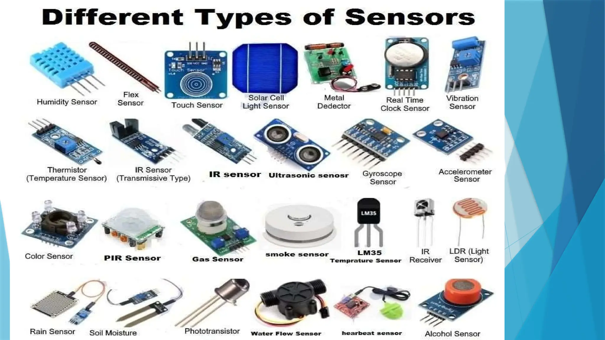 The document provides a comprehensive overview of sensors, describing their classifications into active and passive types, applications, and specific kinds like analog and digital sensors. It details various sensor applications including temperature, humidity, pressure, and smoke detection, as well as advanced technologies such as biosensors and nanosensors. Additionally, it explains concepts related to transducers, energy transformation, and total energy conservation.