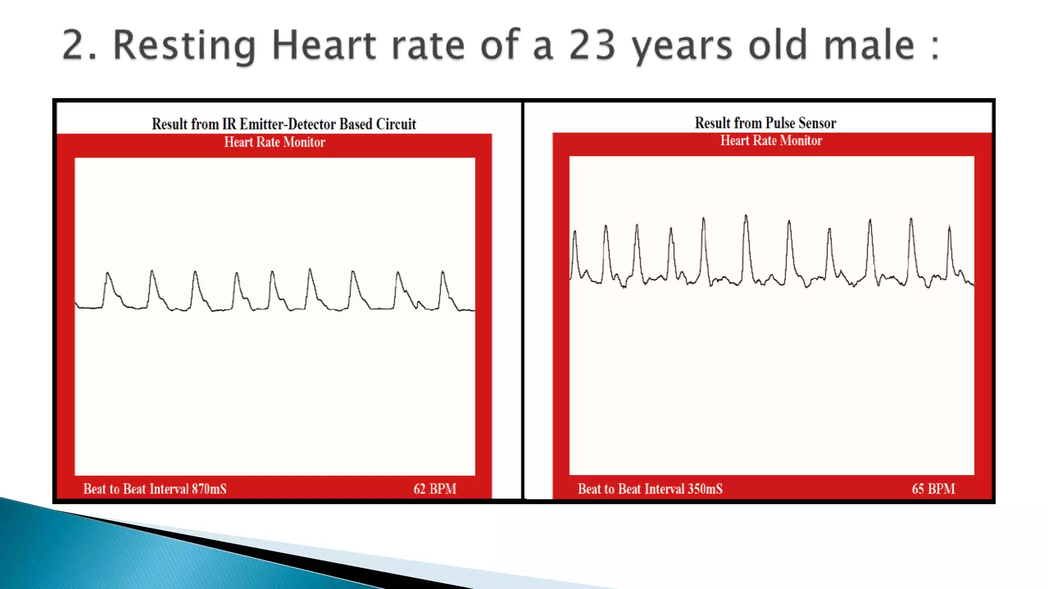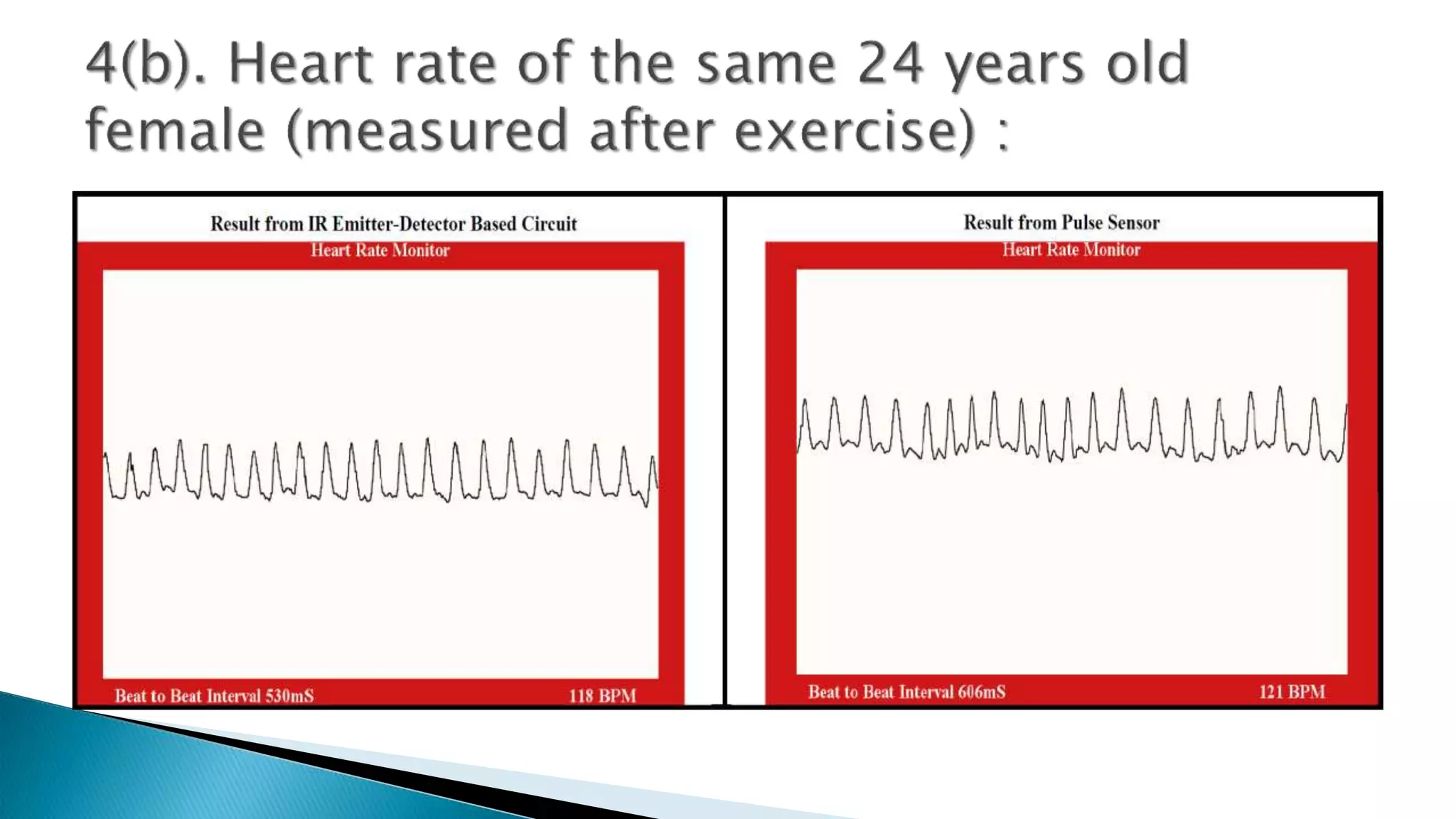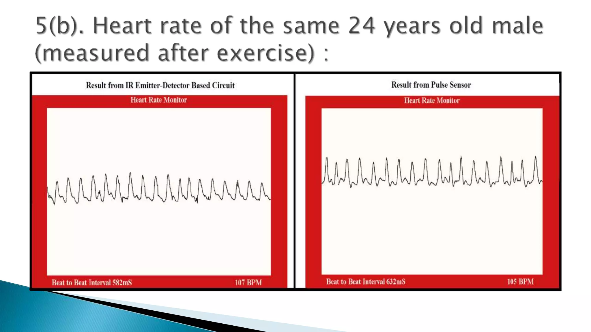 The document outlines a cost-effective method to measure human heart rate using an Arduino and an IR emitter-detector pair through photoplethysmography (PPG). It details the necessary hardware and software components, the signal processing steps involved in detecting blood volume changes, and the calculation of beats per minute (BPM). The project emphasizes the lower cost of their circuit compared to traditional pulse sensors, and notes potential variations in output stability due to user interaction.