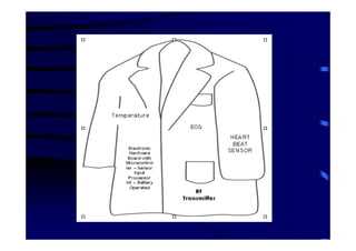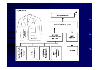 The document discusses the development of a biomedical wearable device designed for remote monitoring of physiological signals, aiming to facilitate early diagnosis and promote a healthy lifestyle. It highlights the integration of advanced technologies in smart clothing, such as ECG and heart rate monitoring, to enhance health care, especially for individuals with chronic diseases. The project illustrates the use of microcontrollers and embedded systems in creating a user-friendly, cost-effective solution for continuous health monitoring.