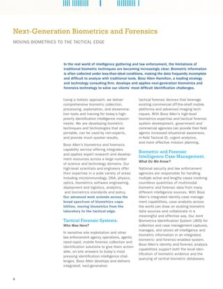 Booz Allen Hamilton is enhancing next-generation biometrics and forensics by developing portable, user-friendly technologies that enable rapid and effective identification in tactical situations. Their integrated systems facilitate collaboration among agencies and leverage advanced analytics to improve biometric data processing and security. The firm has expertise in addressing the vulnerabilities of biometric systems while supporting national security and law enforcement through comprehensive identity management solutions.