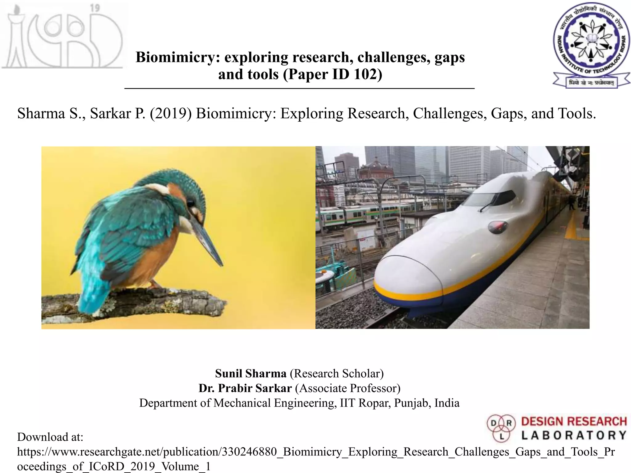 This paper analyzes research on biomimicry, including common tools and methods used. It finds that the most frequently used keyword is "biomimetic" and that research publications have been increasing linearly over time. The top fields of research are chemistry, materials science, and engineering, with most work done in China, France, and the US. Challenges include unfamiliarity with biology, gaps in transitioning between domains, and a lack of standardized tools and methods. The conclusion calls for more case studies and education to advance the field of biologically inspired design.